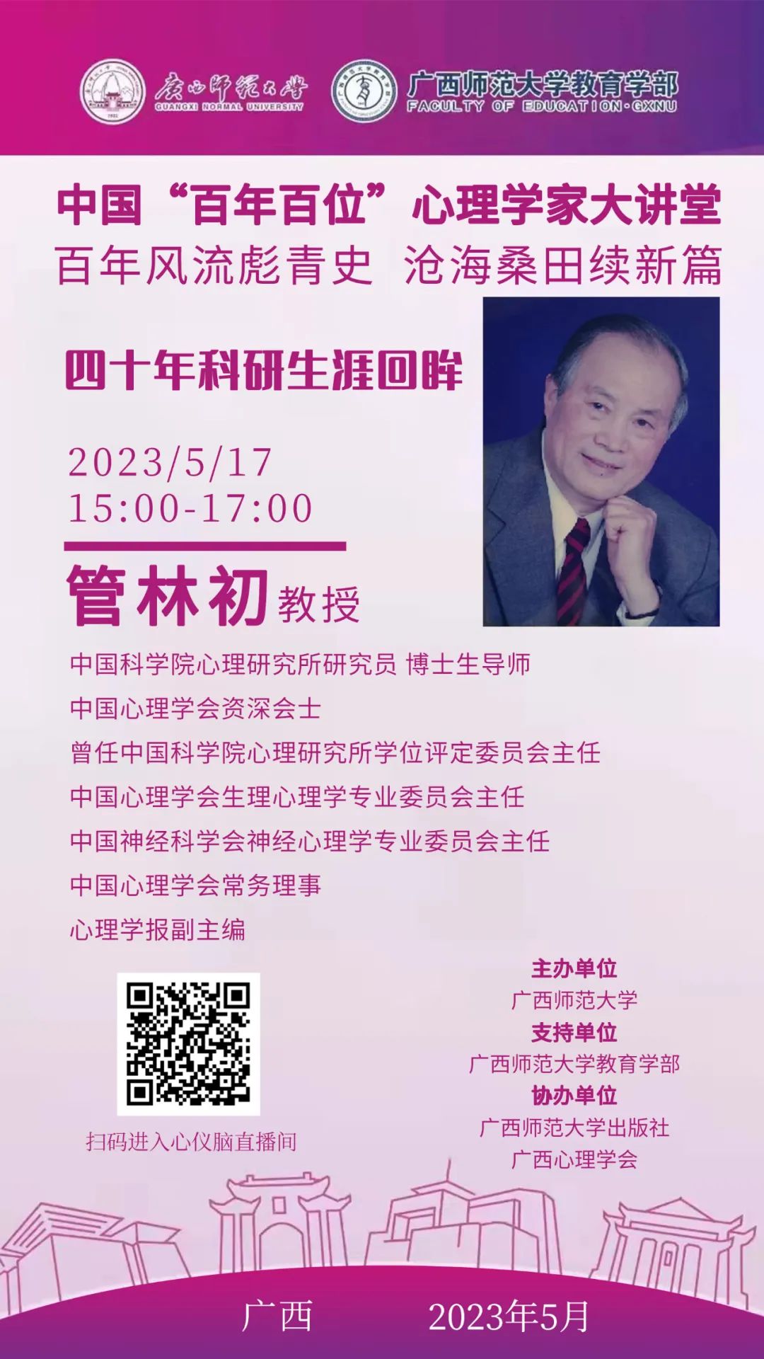 管林初教授,中国科学院心理研究所研究员、博士生导师、中国心理学会资深会士,曾任中国科学院心理研究所学位评定委员会主任、中国心理学会生理心理学专业委员会主任、中国神经科学会神经心理学专业委员会主任、中国心理学会常务理事、心理学报副主编。